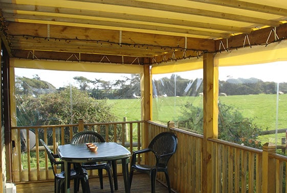 A pergola cover on an existing wooden frame - the cover is made in tough durable waterproof white PVC